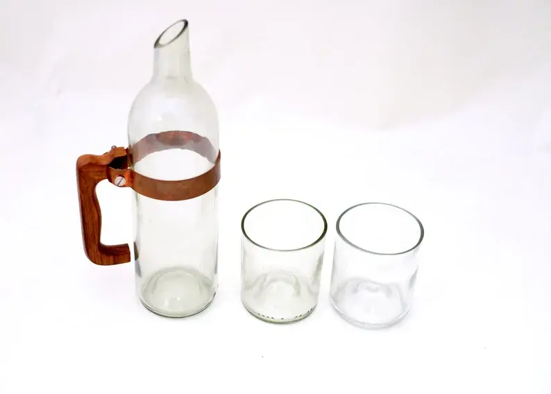 Wine Bottle Carafe Set | 8oz Clear Tumblers & Upcycled Water Jug