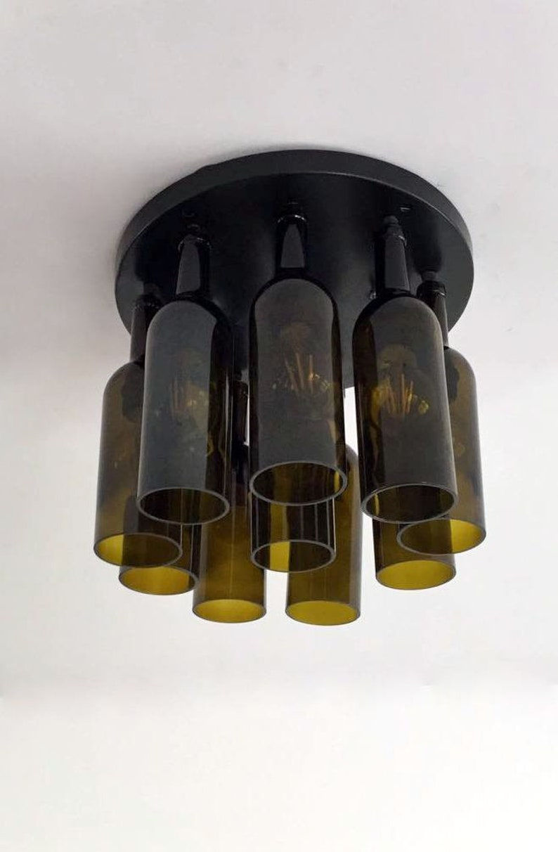 Frosted Amber Wine Bottle Chandelier – Handcrafted Ceiling Light