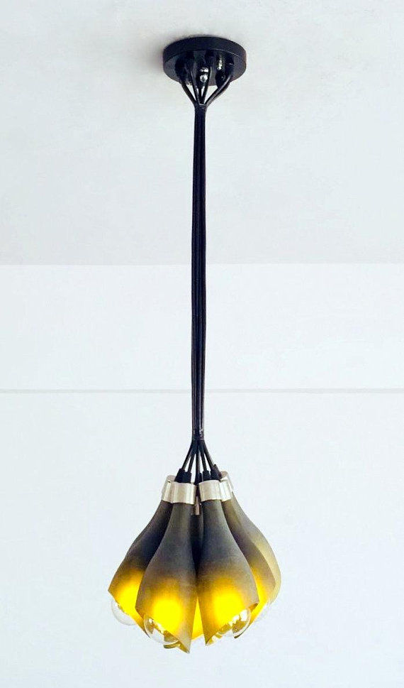 Frosted Light Fixture | Chandelier | Ceiling Lamp Made from Wine Bottles